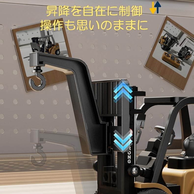 Guindaste e Empilhadeira 2 em 1: Miniatura em liga metálica na escala 1:64, controlada por rádio (comprimento total aproximado de 11 cm x largura aproximada de 4 cm). O acessório incluso permite a transformação em guindaste e empilhadeira. O controle remoto de 2,4 GHz permite 6 operações precisas: para frente/para trás, girar para a esquerda e para a direita, levantar bagagem, empurrar toras e caixas pequenas. Realismo de nível profissional que estimula a curiosidade das crianças e satisfaz os adultos.