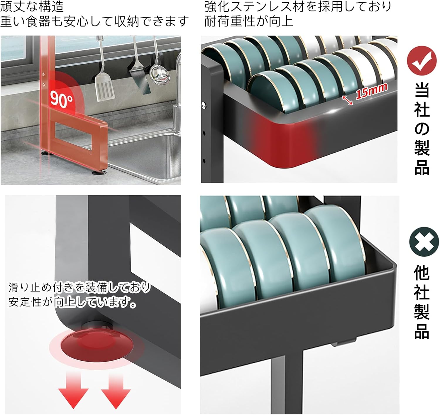 [Fácil de limpar] Além de servir para pratos, também pode ser usado para guardar tigelas e outros recipientes fundos, sendo muito prático. A estrutura principal é feita de aço carbono resistente com revestimento duplo, que resiste a arranhões e oferece excelente durabilidade. Os acessórios são removíveis e laváveis, permitindo que você os utilize por muito tempo.
